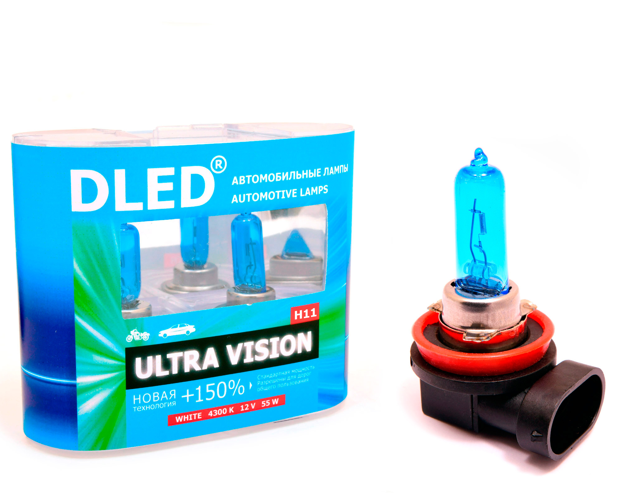 Автолампа галогенная H11 4300К DLED "Ultra Vision" (2шт.)