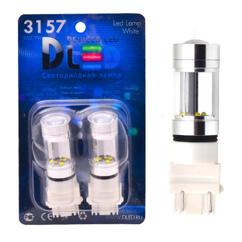 Светодиодные автолампы с цоколем P27W/7W Линза 8 CREE 3157 имеет 8 светодиодов. Благодаря светодиодам уменьшается потребление электроэнергии и лампа намного ярче, чем обычная лампа накаливания.  Лампу используют в стоп сигналах и фонарях габаритах.