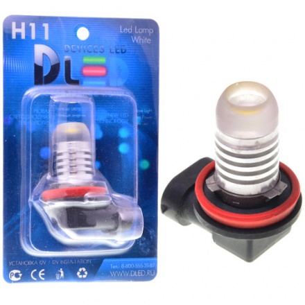 Светодиодные лампы с г-образным цоколем H11 подходят в противотуманные фары в линзованную блок фару. Напряжение у них 12 вольт под легковой автомобиль вставляются в штатное посадочное место без каких либо блоков питания. Заказать светодиодные автомобильные лампы DLED H11 - HP - 5W (с линзой) в интернет-магазине в Москве.